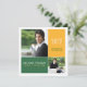 Modern blocks of colour highlights two photos of your graduate. All text can be customised to use as a commencement events announcement (as shown) or to change into a party invitation by modifying the text on the back to suit your needs.