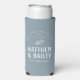 Full-colour custom printed can coolers make a fun and functional wedding favour your guests will love! Personalise the template with the bride and groom's names or monogram initials. Add your wedding date, the city, state or venue name or any other custom text. This modern rustic logo-style design features a simple floral stem and mixed typography in dusty slate blue and white colours. Use the design tools to choose any background colour, edit the fonts or upload your own photos to create a completely custom wedding favour to match your wedding colours and style!