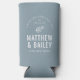 Modern Bloom Wedding Monogram | Dusty Blue Seltzer Can Cooler