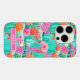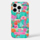 Customize this colorful watercolor iPhone 16 pro case featuring cacti with beautiful blooms in pinks and oranges with your name in a modern CAP font in white on pink. It's so modern and trendy!