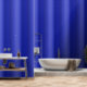 A modern peel and stick wallpaper in deep blue with 3d effect stripes. Update your home with this unique wallpaper.