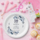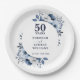 Modern Blue 50th Wedding Anniversary Greenery Paper Plate