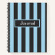 Modern pastel blue and black bold stripe notebook with graph paper insert and customisable title.