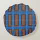 Modern Blue and Brown Geometric Plaid Pattern | Round Cushion