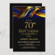 Invite your friends and loved ones to your 70th birthday celebration with this modern blue and gold invitation. The customizable text area in this invitation template allows you to include all the necessary details for your special birthday celebration, including the date, time, venue, and RSVP information. A variety of paper types and corner styles are available for your unique invitations, along with the option to download if you prefer a digital format.