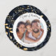Modern Blue And Gold Christmas Leaf Round Photo Holiday Card