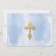 Modern, elegant photo boy Christening Invitation featuring blue watercolor background , elegant gold cross, typography script Christening in trendy lettering and a photo.