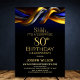 Modern Blue and Gold Surprise 80th Birthday Party Invitation