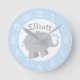Modern Blue and Grey Elephant Custom Monogram Round Clock
