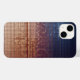 Elevate your tech with this sleek, modern geometric phone case. Featuring a stunning vertical gradient, the design transitions seamlessly from a deep twilight blue at the top to a warm, glowing orange and copper sunset tone at the bottom. This intricate mosaic pattern of tiny 3D-effect squares creates a sophisticated, tech-inspired aesthetic. Perfect for those who appreciate minimalist luxury, clean lines, and vibrant contemporary art. This stylish accessory offers a professional yet artistic look for any device.