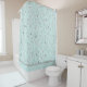 On this stylish shower curtain is a light blue backdrop with leaves and flowers in shades of silver and grey creating a whimsical modern trendy botanical theme for any bathroom decor.