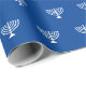 Modern blue and white Jewish menorah pattern Wrapping Paper