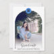 Celebrate the graduate with this modern script graduation invitation featuring an arch shaped photo frame on the front, a second photo on the back room to brag about the grad, too. Class of 20___ also on the front. All blue accent colours easily changed to match your photo or the school colours.