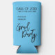 Modern Blue Black Script Grad Party Seltzer Can Cooler