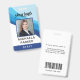 This modern blue employee Photo ID badge with a logo template is versatile and stylish, with an abstract blue wave behind the photo template. The background colours can easily be changed to match your company colours by clicking on "Edit using Design Tool."