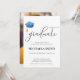 Simple and formal graduation party invitation with an elegant script typography and a light blue graduation cap illustration. Illustrated and designed by Patricia Alvarez.