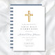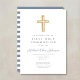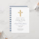 Custom Modern Blue Cross Boy First Communion Invitation. Part of the Dusty Blue Script Cross Boy First Communion Suite with matching stationery and first communion party accessories.