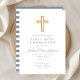 Modern Blue Cross Boy First Communion Invitation