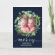 Modern Blue Elegant Script Eucalyptus Foliage Holiday Card