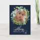 Send holiday warm wishes and greetings to your loved ones with this lovely, elegant and festive photo holiday card featuring "Merry CHRISTMAS" in elegant hand-lettered script calligraphy with beautiful wreath frame of eucalyptus with assorted green foliage. Reverse to reveal a lovely white snowflakes in soft baby blue background. Wish you all a Merry Christmas and Happy New Year!