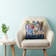 Modern Blue Family Photo Name Cushion