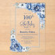 Modern Blue Floral 100th Birthday Party Acrylic Invitations