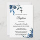 This modern blue floral cross baptism invitation is perfect for a simple baptism. This elegant hand-painted floral design features blue, dark blue and indigo graceful flowers with green leaves, depicting majestic natural beauty.