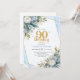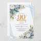Modern Blue Floral Gold Frame 90th Birthday Invite