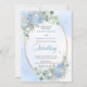 Make your special day unforgettable with this elegant watercolor wedding invitation, thoughtfully designed to shine with Zazzle’s premium print quality. Featuring soft pastel blue hydrangeas, delicate eucalyptus and greenery foliage, and a refined gold glitter oval frame, this invitation blends timeless romance with modern sophistication.