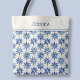 Modern Blue Floral Pattern Elegant Stylish Name Tote Bag