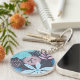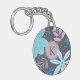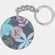 Modern Blue Flower Pattern Pink Monogram Key Ring