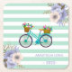 Modern Blue Flowers Bicycles Square Paper Coaster
