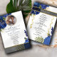Grab yourself a unique wedding program that you can fully customise to make it special and unique to your wedding. the design comes with a frame where you can put your picture/photo with your man or with your woman, the frame that comes with beads will complement the photo of the couple inside it and will make the card look so elegant. Modern wedding program card with blue and gold accent.