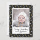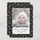 Send customisable and personalised holiday greetings to friends, colleagues and family in simple, minimalist, elegant, fun, festive and modern photo cards! A beautiful frame of variety of gold and white Christmas Pine Tree Acorns on black background surrounds your photo on round edge paper. The greeting " Merry Christmas " is written in elegant calligraphy, and below features your custom greeting message from your family name in modern typography. Reverse to reveal a beautiful the full Christmas Pine Tree Acorns pattern background.