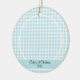 Modern Blue Gingham Baby Photo Ceramic Ornament