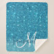 Modern Blue Glitter Sparkles Personalised Name Sherpa Blanket