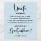 Ask your brother, cousin, or best friend to be your child's godfather with these wine bottle labels. Unique modern wine labels feature calligraphy script, your message on a blue background.