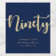Minimalist 90th birthday dark blue and gold wine bottle label in modern, chic and elegant typography style. Featuring age "ninety" in sparkly gold. Customise with age, name, and year of birth.
