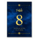 This Table number card features yellow gold details on a blue midnight night sky background. You can add your details by clicking the personalise button. This is part of a matching wedding suite that can be fully personalised.