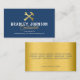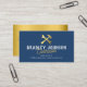 Make a bold, professional first impression with these modern construction contractor business cards. Featuring a stylish blue background and a striking faux gold foil hammer and spanner logo, this design is perfect for builders, contractors, and trades professionals who want to stand out.