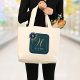 Modern Blue Gold Floral Name and Monogram Tote Bag