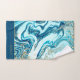 Modern Turquoise Teal Ocean Blue Gold Marble Monogram Name Bath Towel Set