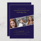 Invite your guests in style with this blue and gold Modern Party Invitation featuring three photo collage, Perfect for any special birthday, this eye-catching design will get your guests excited to come party with you.