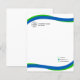 This modern classic personalised letterhead features dynamic wave accents in bold blue and vibrant green, creating an energetic yet professional look. The flowing curves at the top and bottom add visual movement while framing the central white space perfectly for your content. A small contact icon section at the bottom reinforces practicality without cluttering the design, making it ideal for business documents, proposals, and official correspondence.