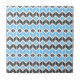 This ceramic tile features a colourful geometric herringbone pattern in blue, dark grey, and white.