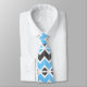 This necktie features a colourful geometric herringbone pattern in blue, dark grey, and white.