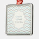 Modern blue, grey, ivory chevron pattern custom metal ornament