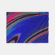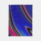 This multicolored fleece blanket features a swirly fractal design in dark blue, magenta, black, and grey.
