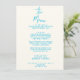 A colourful retro funky modern blue French style wedding dinner menu. Which features chic template design of creamy milky background and blue handwritten typography. A Perfect and matching with the whole suite.