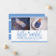 A blue hand-lettered hello world photo birth announcement postcard to welcome your new arrival. Send out this card to friends and family so they can see your new bundle of joy.